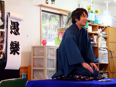 場が暖まってきたところで落語本番。今回も日暮里兄さんの『子ほめ』からスタートです。