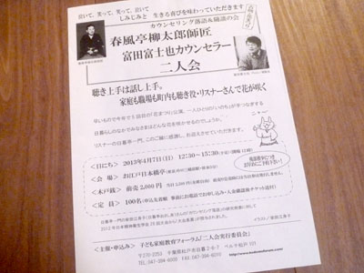 そしてもちろん柳太郎師匠の落語&富田先生のカウンセリングもお楽しみいただける二人会。