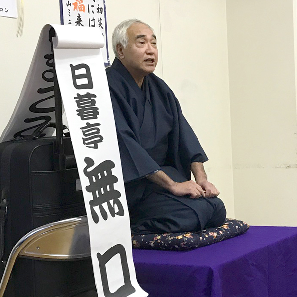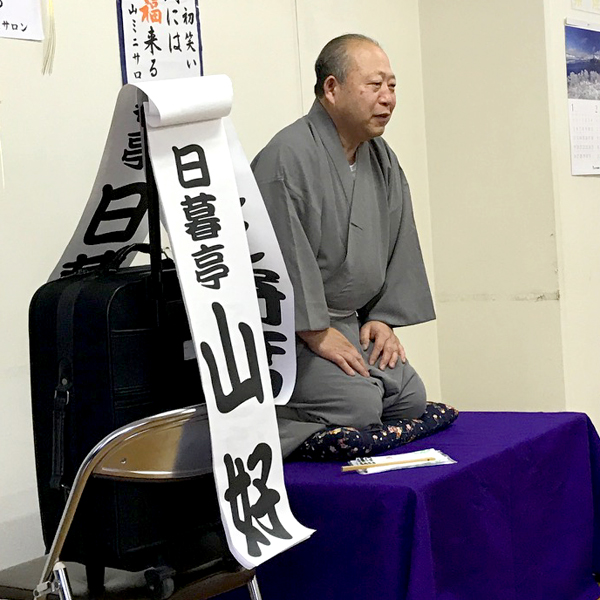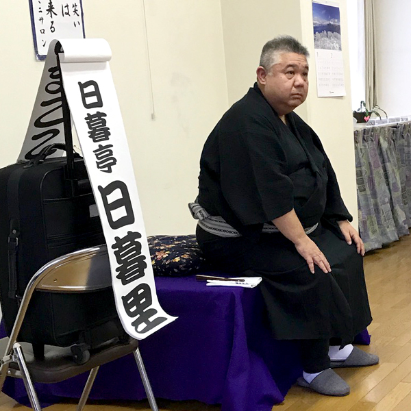 たいへん立派な台を用意してくださっているんですが、足腰への負担を考えての座り落語です。