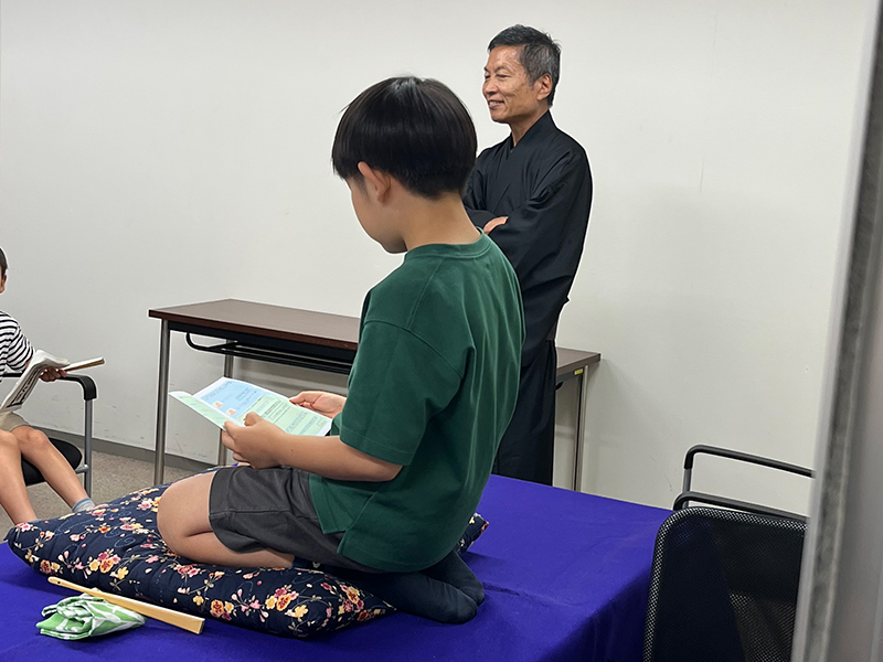 そんな暑い中、らくご笑学校の2回目が開催されて、今回も4人の子どもたちが集まってくれました。